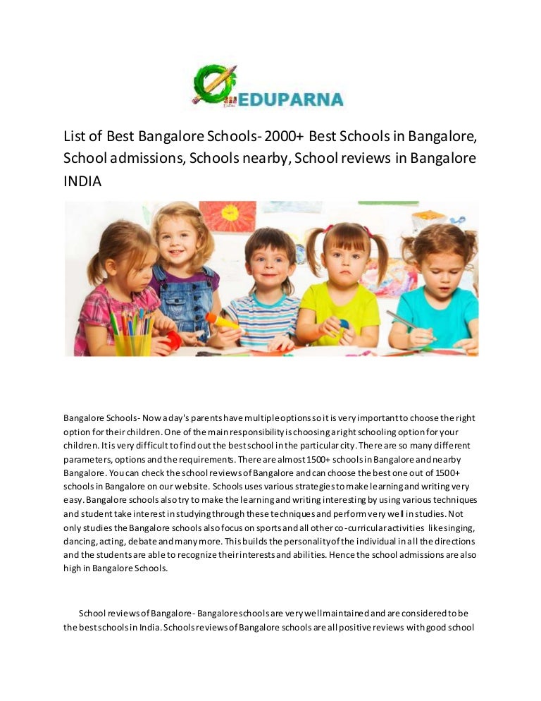 Know The Top Schools In Bangalore Sqoolz Com Sqoolz Makes The Job