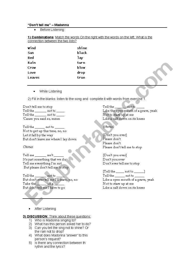 Madonna Dont Tell Me Lyrics Madonna Me Too