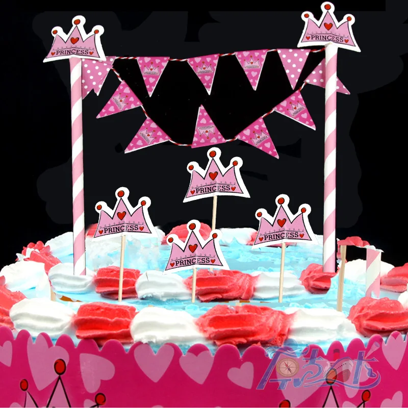 New Arrival Pink Heart Princess Crown Design Cartoon Paper Cake