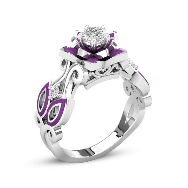 2019 Seanlov New Hot Puprle Flower Rings For Women Silver Color Luxury Zircon Wedding Engagement Promises Finger Rings Jewelry From Watchoutbaby