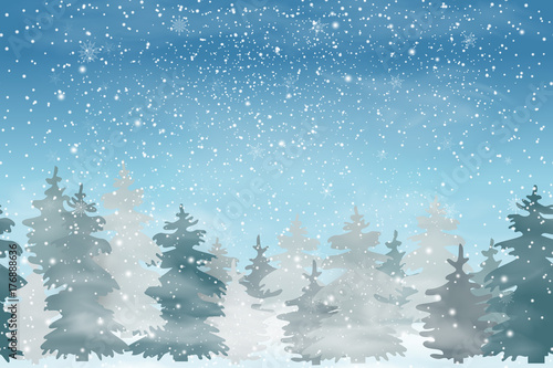 Fototapete Christmas Snow Landscape Wallpaper Snowy Forest Background