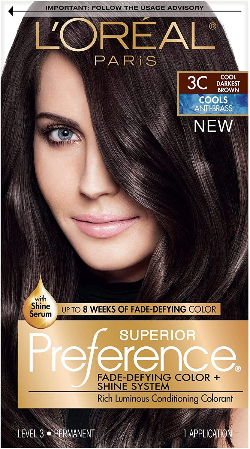 L Oreal Paris Superior Preference Fade Defying Shine Permanent Hair Color 3c Cool Darkest Brown Pack Of 1 Hair Dye Amazon Sg Beauty